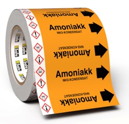 I tillegg skal det varsles for fare (om innholdet kan være farlig) med en egen sort/gul-stripet varseltape, i minst halvparten av rørmerkets bredde. Denne kan settes på én av sidene ved rørmerket.
